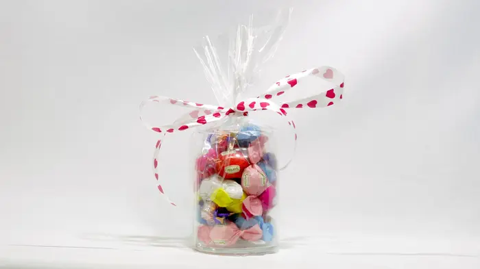 ואזה זכוכית עם מגוון פרלינים.